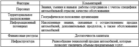 Таблица 1.1 Факторы конкурентоспособности для автосалона