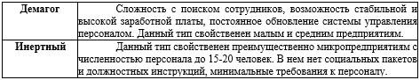 В ходе изучения подчеркнули 4 типа кадровой политик: "стабильный", "инертный", "прагматик" и "демагог". Предпринимателям в большей степени подошли 2 типа рассмотрим в таблице 1.1: