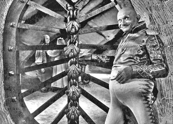 «Очеловеченные черти симпатичнее, чем очертенелые люди»Безусловно, Георгий Милляр стал самым сказочным из всех артистов на планете. Он нередко говорил: «Я работаю в области сказок». Но одно дело – принцы и богатыри, а другое – ведьмы и оборотни. Вот их-то и взвалил на свои хрупкие плечи сын французского инженера. Причем сам Милляр любил, чтоб было пострашнее. Когда он появлялся во дворе киностудии в костюме самой первой своей Бабы Яги на съемках «Василисы Прекрасной», ребятишки с плачем разбегались в разные стороны. А когда он в образе Кощея предстал перед лошадью, та встала на дыбы и отказалась подпускать его к себе. Приходилось завязывать ей глаза, но как только она оказывалась без повязки – тут же сбрасывала актера прочь. Действительно, Милляр в этом образе был чудовищно страшным. От природы худой, во время эвакуации начала сороковых он перенес среднеазиатскую малярию, поэтому выглядел «живым скелетом». Оператору было легко работать с такой фактурой, при умелом обращении приближая ее к образам ранней готики. Роу просил актера быть «чуть-чуть помягче», не отдаляться к «ужастикам», но Милляру хотелось выглядеть «погаже», отчего выигрывали оба героя фильма: и красавец-Столяров, и «уродец»-Милляр.