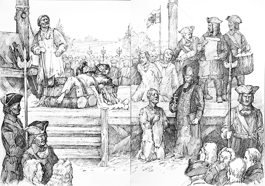 И вот на расстоянии четверти версты от этого печального места к 8 ноября 1739 года поставлен был эшафот, а по-русски – плаха.