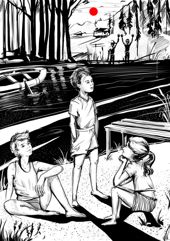 В один из жарких дней уже она приехала к нему домой, и дети решили пойти на реку купаться. Старший брат Саша захотел отправиться с ними, да и родителям было спокойней, что Максим и Вика будут под присмотром. По дороге разговор не слишком строился и тогда Максим впервые запел при Вике. Он делал это негромко и достаточно неуверенно, но всё-таки это было красиво. Он пел так самозабвенно, что и не требовалось вести хоть какой-то диалог. Саша, обычно смеявшийся над потугами брата, сейчас внимательно слушал песню. Как только они дошли до реки, то понеслись купаться, и магия как будто бы растворилась.
