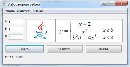 Рассмотрим пример кода кнопки «Решить» и «Выход» для расчета математического значения по условию:
