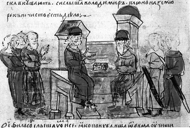 Речь грека-философа перед князем Владимиром с изложением православной веры.