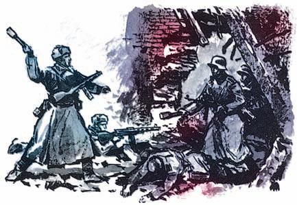 Подбежали солдаты затем к проему. Открыли огонь из винтовок и автоматов. Когда закончился бой и утихли выстрелы, подошли, заглянули бойцы в проем.