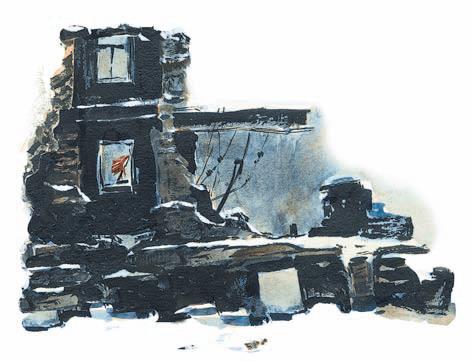 Сражался солдат в составе родного стрелкового взвода. Обороняли вот этот дом. Вдруг прибыл приказ – занять бойцам по соседству другие позиции. Двинулись воины к новому месту. Солдат прикрывал переход. Покинули дом боевые друзья. Сделал выстрел последний солдат. Хотел устремиться за всеми следом. В эту минуту его и ранило. Вскрикнул. Согнулся. Упал солдат.