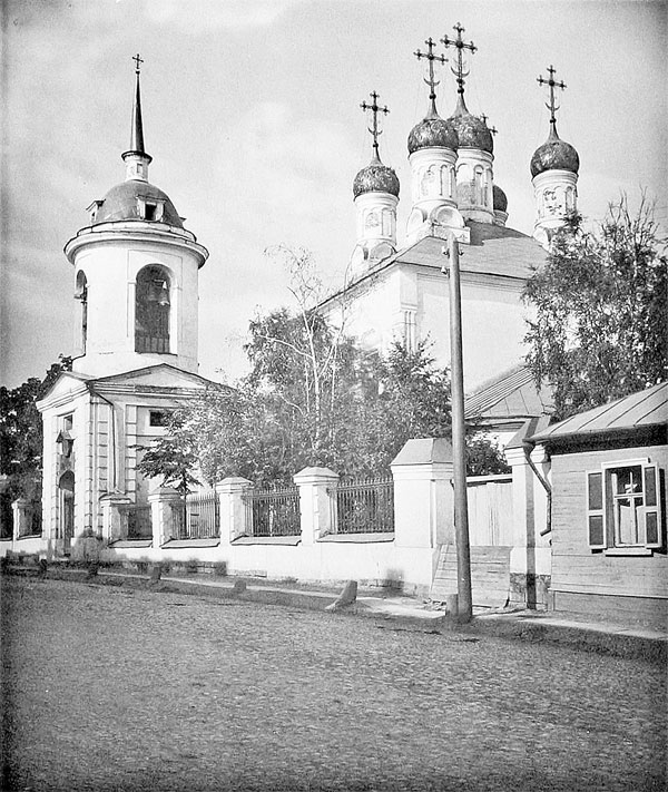 Колокольни при церкви нет, ибо построенная в 1857–1858 гг. вместо старинной была в советское время разрушена. Уцелели кованые железные двустворчатые двери в северном и южном порталах и белокаменная надгробная доска на южной стене. В церкви долгое время (с 1930 г.) находилась библиотека иностранной литературы, а перед тем как она была возвращена церкви – типография.