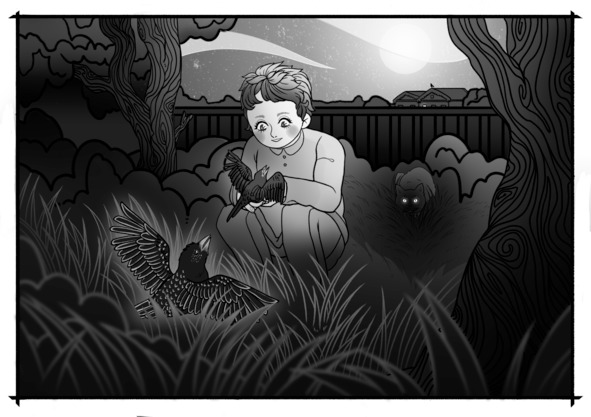 Птиц нужно вернуть домой! В этот момент Кирюша услышал новые звуки – тихое, сдерживаемое дыхание, осторожные шаги по траве, и тут же увидел два зеленых светящихся глаза. Кошка! От нее веяло опасностью и злобой.