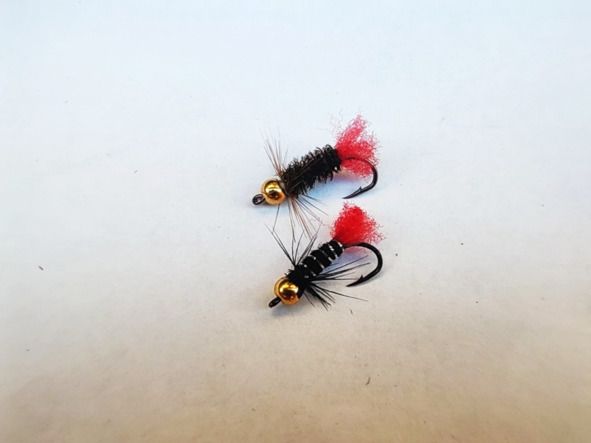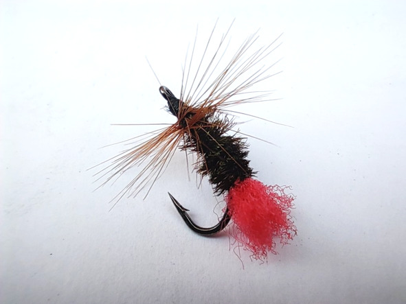 В большинстве остальных случаев чисто красный цвет имитации используется или в небольшом и мелком размере (1), или как добавочный, для различных целей. На мушки «Red Tag», например, красный хвостик нужен не столько для хариуса, сколько для рыбака. Потому что его легко поймать взглядом на поверхности быстрой реки и, контролируя проводку, вовремя сделать подсечку (2).