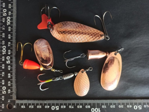 Блесны – металлические имитации малька. Нержавейка белая, латунь и бронза – жёлтые. Медь у нас будет красной. Красная медь хорошо ловит щуку в пасмурную погоду и там, где много мелкого карася. Так было, например, в Качимовке за Пашино. На поплавочную удочку местные ловили штук по триста карасиков в палец длиной. Щука меньше 900 гр. не попадалась. За рыбалку, во многом из-за коряжника, одна-две обрывали леску. Но будучи крупной брала только мелкие медные колебалки. Бронза и латунь тоже ловили, но заметно хуже. Сейчас там все изменилось. Карась стал крупным, щука почти исчезла. Думаю, временно.