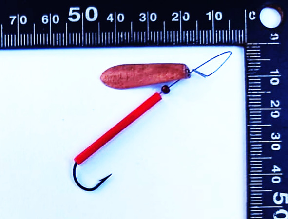 Любимая вертушка обского язя – медная с красным кембриком. Крючок одинарный 8,5—10 мм. между кончиком жала и цевьём. В пасмурную погоду, горя красным огоньком, медный пятачок без промаха собирает окуня. Кембрик на него может быть белого цвета с короткой, красной, опушкой двойных крючков из тонкой стали. Номер 7 по-старому. Судака медь ловит в любую погоду наравне с белой нержавейкой.