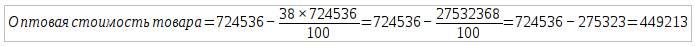 Для определения оптовой стоимости используются те же формулы, только вместо цены одного товара применяется сумма розничной стоимости группы товаров.