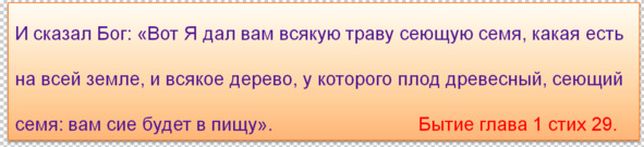 Древние люди хорошо знали эти Божьи наставления, поэтому и жили по 800 – 900 лет. А вот когда люди пристрастились к животной пище, жизнь их сократилась более чем в 10 раз. 800 лет жизни потеряло человечество за нарушение этих наставлений. Но, даже если человек с самого первого дня своего существования теперь будет вегетарианцем, то это не значит, что ему уготовано 800 – 900 лет жизни. На генетическом плане произошли изменения, вернуть которые к первозданному виду даже за 1000 лет будет нельзя.
