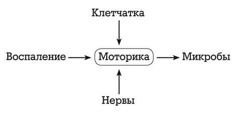 Маятникообразные движения. Возьмите длинный носок за два конца и дёргайте в стороны много раз, растягивая его. Если внутри носка что-то есть, это что-то будет раскачиваться, как маятник. Точно так же поступает и кишечник: он расширяется и укорачивается, а затем удлиняется и сужается. Частота этих движений отличается в разных отделах кишечника. В среднем двенадцатиперстная кишка «раскачивается» со скоростью 12 циклов в минуту, тощая кишка – 10 циклов в минуту, подвздошная – 7 циклов в минуту.
