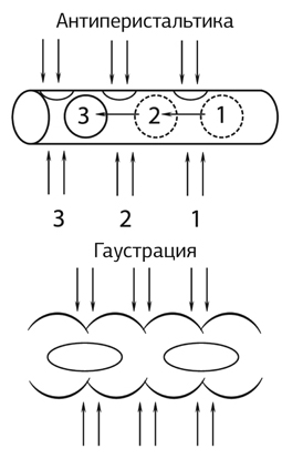 Толстая кишка тоже умеет совершать ритмическую сегментацию, маятникообразные и перистальтические движения. А ещё она имеет две суперсилы, которые называются антиперистальтика и гаустрация.