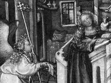 В нидерландском искусстве XV в. многие события евангельской истории переносятся в современные – причем как никогда детально и реалистично прописанные – пространства и интерьеры. Комната, в которой архангел Гавриил возвещает Деве Марии благую весть, часто напоминает покои, где мог жить дворянин или богатый бюргер, заказавший художнику это изображение. Скамьи с подушками, ставни, камины, подсвечники, вазы, на стенах – раскрашенные гравюры (тоже недавнее изобретение) с фигурами святых, за окном – черепичные крыши соседних домов…