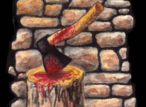 Странную мрачную комнату наполняла непонятная и, вместе с тем, ужасно отвратительная вонь. Присмотревшись, в самом дальнем углу помещения, там, где горел факел, Олег разглядел большой, густо испачканный чем-то тёмным, пень, в который был воткнут огромный, измазанный чем-то таким же непонятным и тёмным, топор. Над пнём с потолка, непонятно как, свисал внушительных размеров железный крюк, напоминающий своими очертаниями рыболовный. Сбоку же от пня, на полу… При виде этого Олега замутило. Потому что там оказались свалены в кучу отсечённые человеческие головы! Причём, почти все они были уже разлагающимися от времени, хоть и разной между собой степени этого ужасного временного изменения. Сразу стало понятно, что источало ту тяжёлую, оказавшуюся трупной, вонь. Как и то, во что были испачканы зловещие пень и топор. То испачкавшее их тёмное нечто было ничем иным, как человеческой кровью…