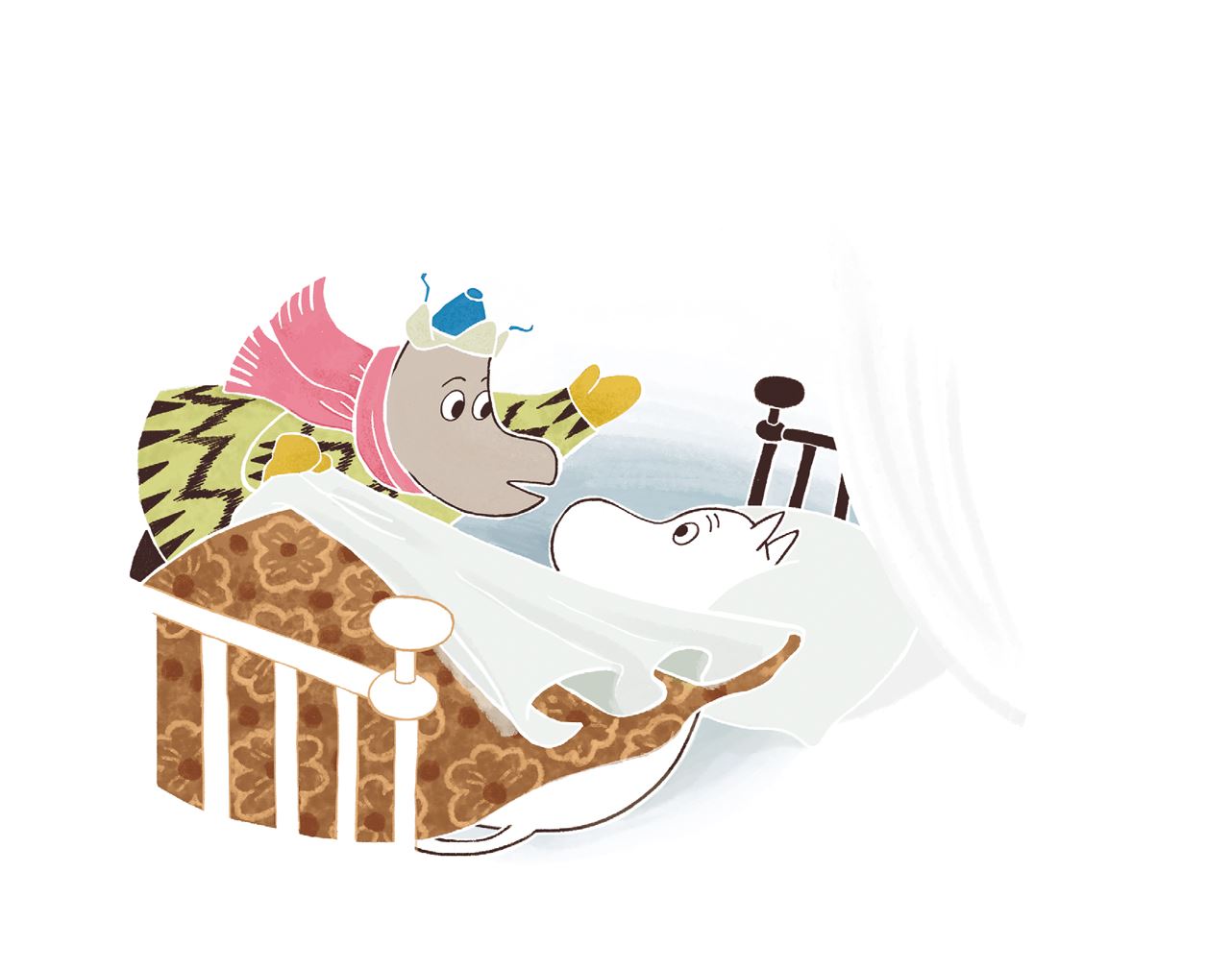 Но – ничего не выйдет! Хемуль стягивает с Муми-тролля одеяло и кричит ему: