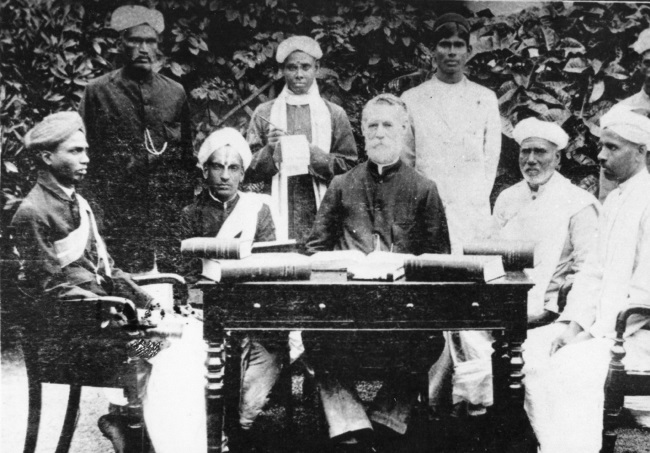 Муруганар (слева) заседает в составе Комиссии по составлению словаря тамильского языка. Период между 1913–1919 гг.