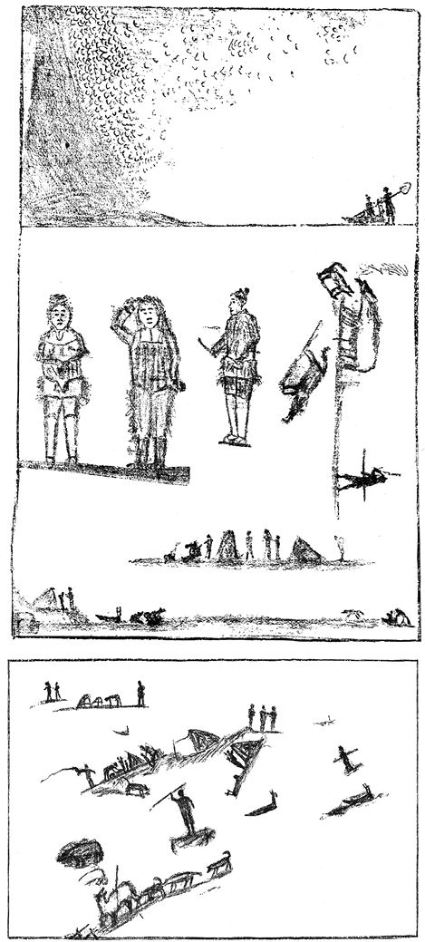 Рисунок 14-летней эскимосской девочки. Работала около часа. Подписи из книги Р. Пири
