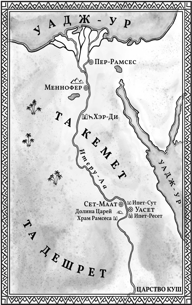 Образы из сна таяли. Безлунная ночь опускалась на Город Мертвых темным искристым покрывалом, мягко ступала по пескам и садам, перешептываясь с ветром среди ветвей. Западный Берег, гудевший днем, словно улей, засыпал, и, если прислушаться, в этой тишине можно было даже услышать плеск волн Итеру[13]. Где-то в скалах, граничащих с бескрайними песками Дешрет[14], подвывали шакалы, и псы-стражи вторили им на разные голоса.
