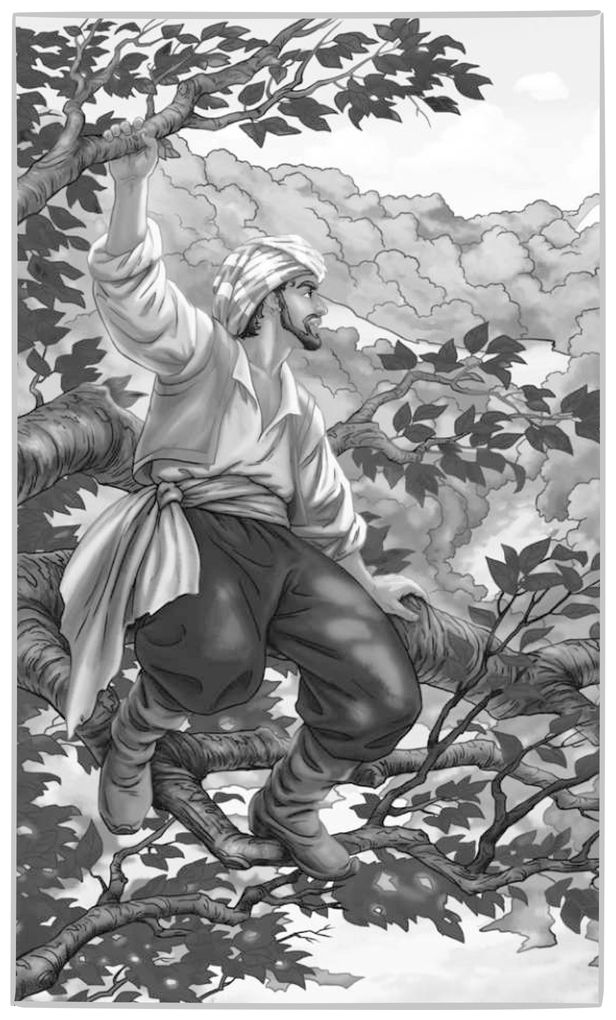 Прошло несколько дней. И вот однажды Синдбад влез на дерево и увидел вдали большой белый купол, который ослепительно сверкал на солнце. Синдбад очень обрадовался и подумал: «Это, наверно, крыша дворца, в котором живёт царь этого острова. Я пойду к нему, и он поможет мне добраться до Багдада».
