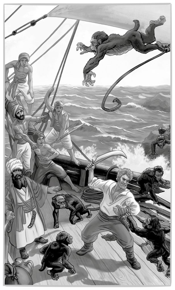 – Берегись, Синдбад! Разве ты не видишь, что если каждый из нас убьёт десять или даже сто обезьян, остальные разорвут его в клочья или выкинут за борт? Бежим с корабля на остров, а корабль пусть достаётся обезьянам.