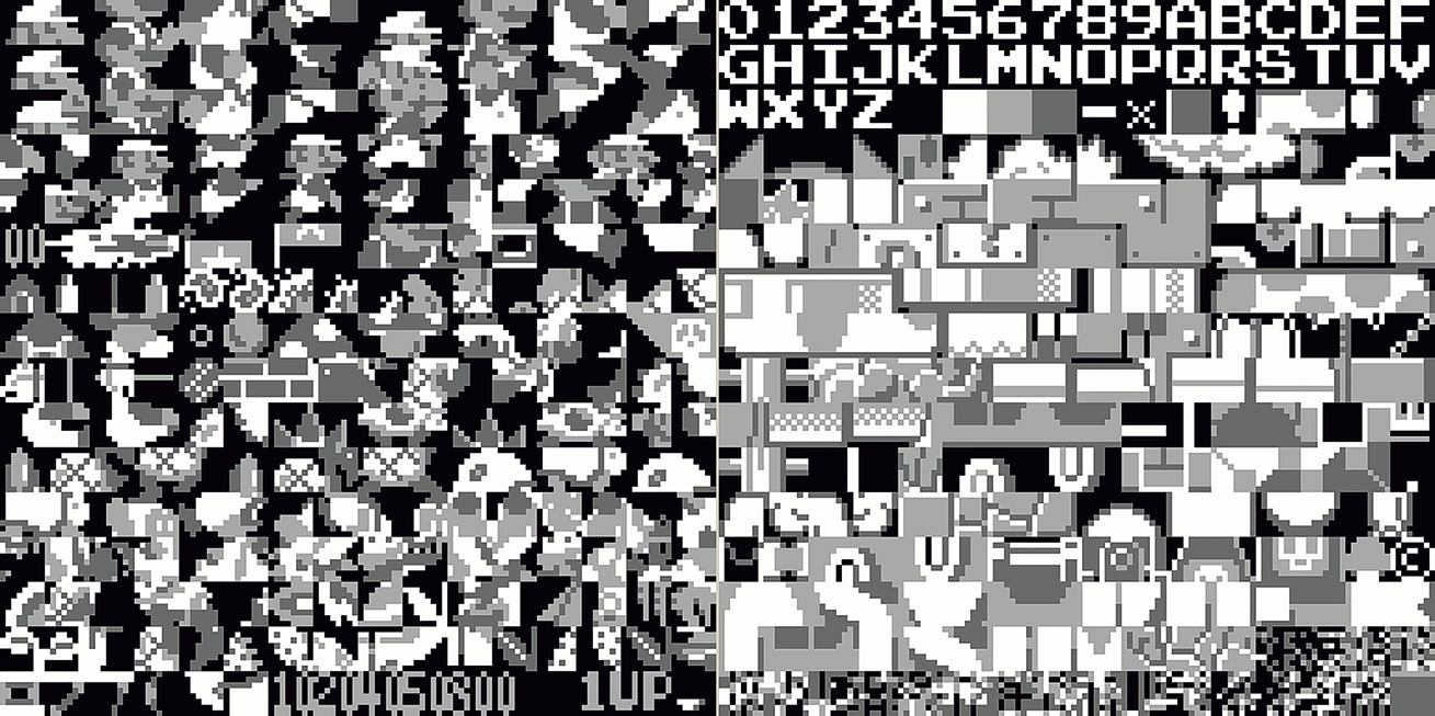 Почему же мы не видим здесь отдельного спрайта для Марио, отдельного спрайта для боссов и для окружения? Где облака, где кусты? Что это за каша такая? А дело в том, что на NES крупные спрайты состояли из множества квадратиков 8 × 8 пикселей, каждый из которых имел несколько вариаций, чтобы создать анимацию. Спрайт Марио складывался из двух квадратиков, последовательная смена которых создавала иллюзию движения.
