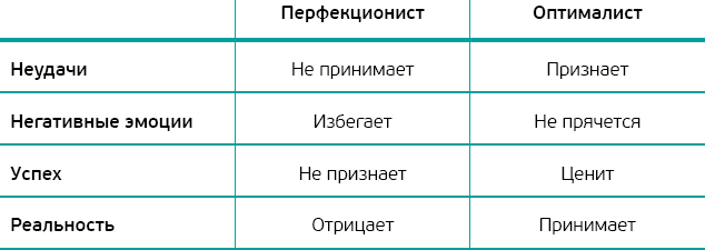 Цели перфекционистов и оптималистов часто похожи. И те и другие могут страстно чего-то желать и проявлять упорство в достижении своих целей. Основное отличие – в отношении к процессу достижения цели.