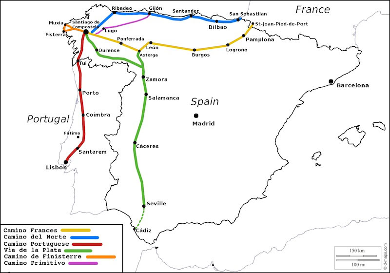 Идея о том, чтобы пройти этот путь, у нас появилась, когда мы были зимой в Италии и гостили у одного очень хорошего мужчины. На его холодильнике висело несколько магнитов с надписью «Santiago». Поинтересовавшись, где это находится, он рассказал нам историю о том, как он прошел путь паломников – пеший путь, начинающийся во Франции и идущий через всю Испанию. Весь путь составляет 800 км. Но этот путь берет свое начало не только во Франции, есть много путей, но все они ведут в одно место – город Santiago de Compostela. Путь, что идет из Франции, называется Camino Frances. А люди, которые идут этот путь, – пилигримы. Но об этом чуть позже.