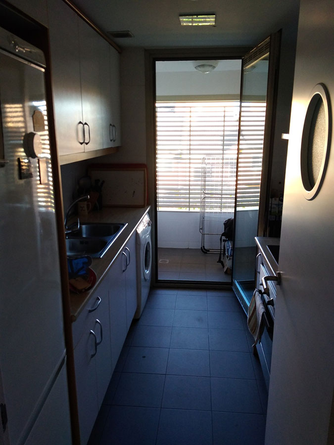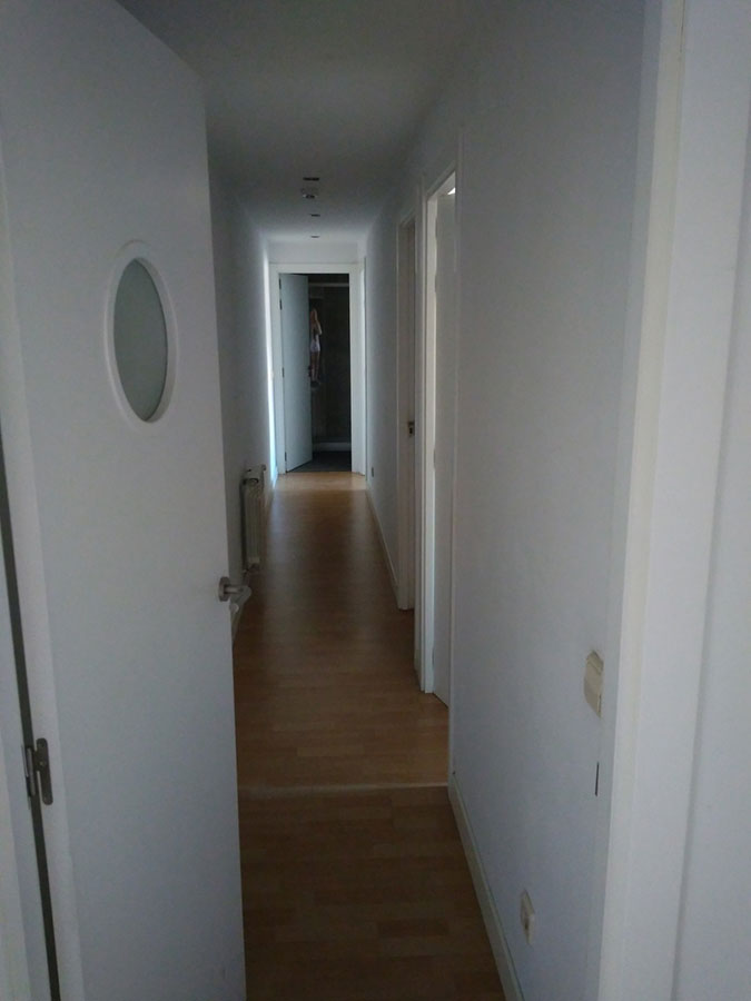 У него очень просторная квартира: длинный белый коридор, небольшая кухня, две комнаты, два туалета и гостиная.