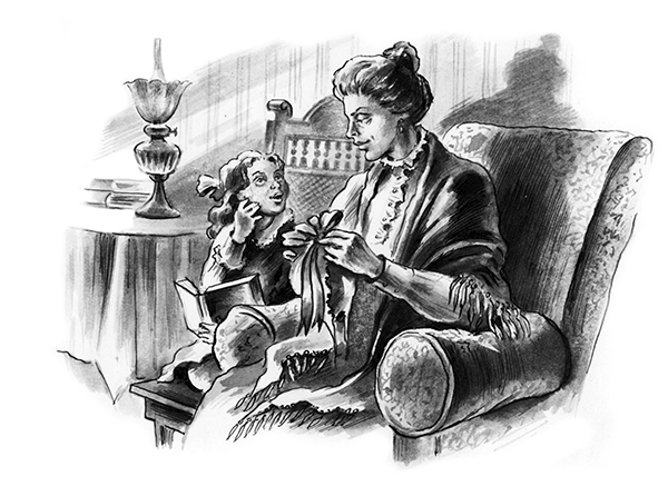 Среди дня Ариша убирала все лишнее с покрытого белой салфеткой стола, стоявшего у изголовья больной, и приносила обед. Соня добилась разрешения обедать тут же, сидя у стула на маленькой ножной скамеечке, и это последнее удовольствие окончательно примирило ее с маминой болезнью.