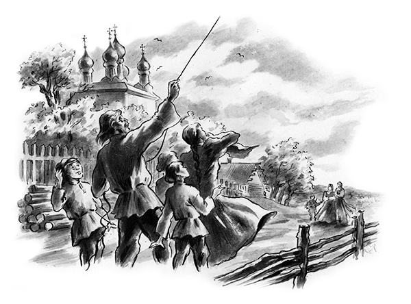 – Козырнул, козырнул, получил письмо, кланяется, – кричали старшие дети, когда змей, подхваченный порывом ветра, резко метнулся было вниз и опять выровнялся, направляемый умелой рукой, дергавшей веревку. Малыши смотрели на батюшку так, что, предложи он сейчас привязать к веревке и послать наверх любого из них, они не усомнились бы, что он сможет это сделать.