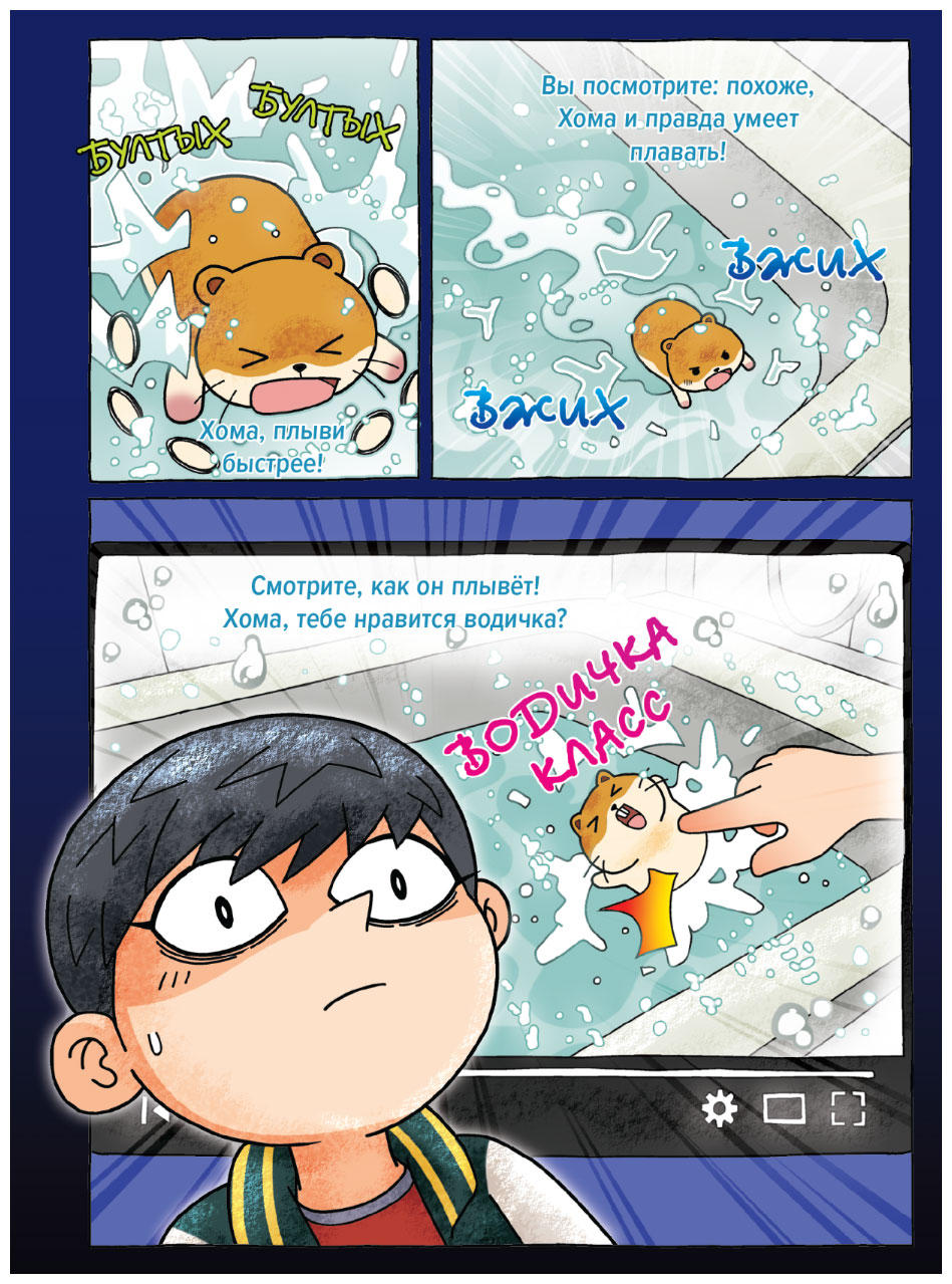 – Ладно! Если у вас проблемы со здравым смыслом, то я объясню, – медленно поднимаясь с места, начал Хансэ. Сейчас он не хотел кичиться знаниями – ему было важно доказать ребятам, что дело действительно серьёзное. – Во-первых, хомяки не принимают ванн, а чистят свою шерсть при помощи песка. Вода же, наоборот, может им только навредить. Барабанные перепонки у хомяков очень нежные, и если в уши попадёт вода, это может им навредить. Как человек, не зная о хомяках элементарных вещей, заводит животное и подвергает его опасности?! Хомяк на видео не купается, а спасает свою жизнь!
