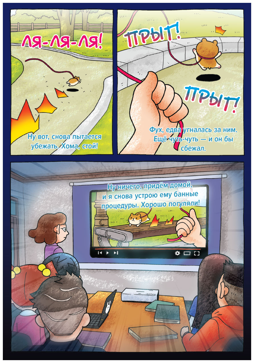 – Во-вторых, хомяки – это территориальные животные, – ещё громче продолжил Хансэ, – поэтому, если кто-то вторгается на их территорию или, наоборот, выгоняет с неё, они испытывают сильнейший стресс! На первый взгляд может показаться, что на видео хозяин просто гуляет со своим питомцем, они развлекаются и исследуют новые места. Но это не так! Хомяку очень страшно. Кроме того, он может заразиться опасными болезнями, с которыми не справится его организм. А если бы хомяк сбежал от хозяина? Вы хоть знаете, как трудно его найти? А что могло с ним случиться, если бы он остался один на улице?