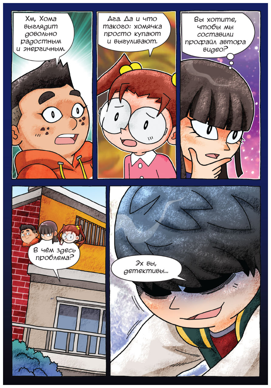 «Я узнаю побольше о повадках хомяков! – решил Хансэ. – Так я смогу найти самого Хому – главную улику в деле. У него шерсть цвета пудинга и длина тела около десяти сантиметров. Если я найду больше информации об этом виде хомяков, то с лёгкостью отличу его от других!»