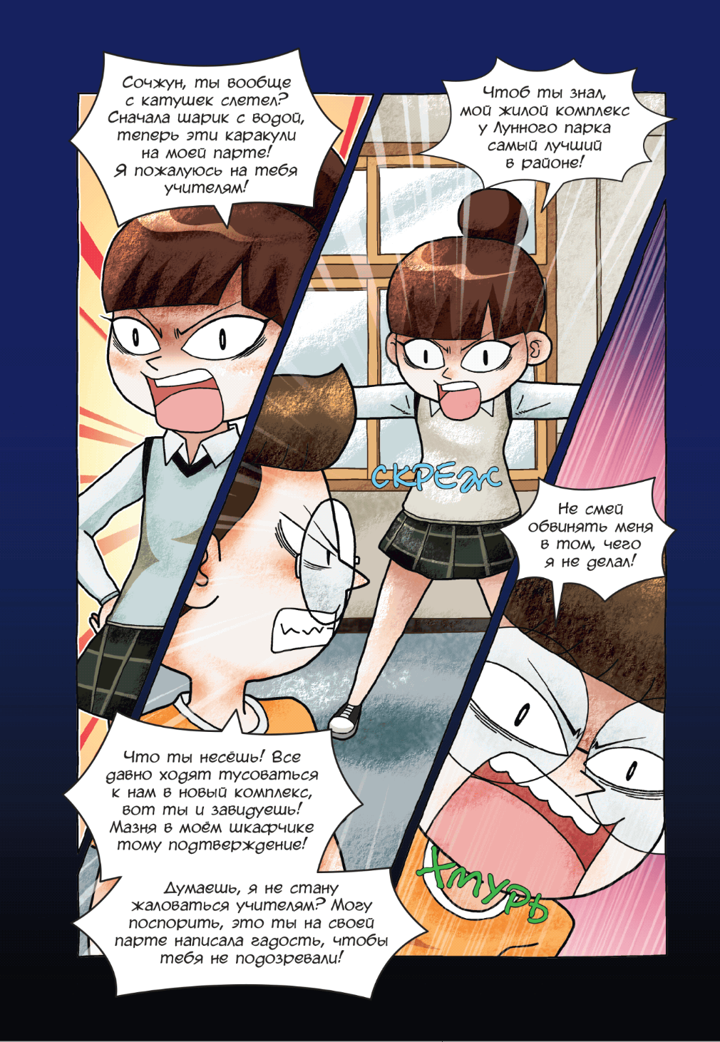 – Надо мной издеваются ребята, которые живут в жилом комплексе «Лунный свет»! Думают, раз их дома находятся в новой части района, им всё можно! – ответила девочка, краснея от гнева.