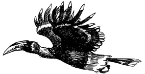 Над дорогой, сверкая толстым, тяжелым клювом, пролетела птица-носорог.