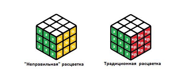 Расцветка куба (з-зелёный, о-оранжевый, кр-красный)