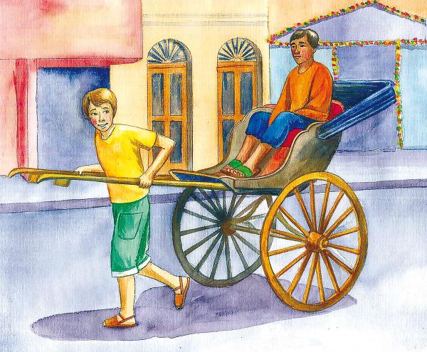 Прибыл он в тот же индийский город и стал приглядываться к рикшам. И узнав, говорит бедному индусу, чтобы тот сел сам в свою коляску, а дядя Женя его повезёт. Тот не хотел, но дядя Женя дал ему денег и усадил того в коляску.