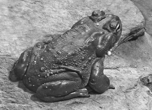 Bufo alvarius, жаба, выделяющая психоделические секреции кожей и околоушными железами (вверху). Майянская ваза в форме жабы.