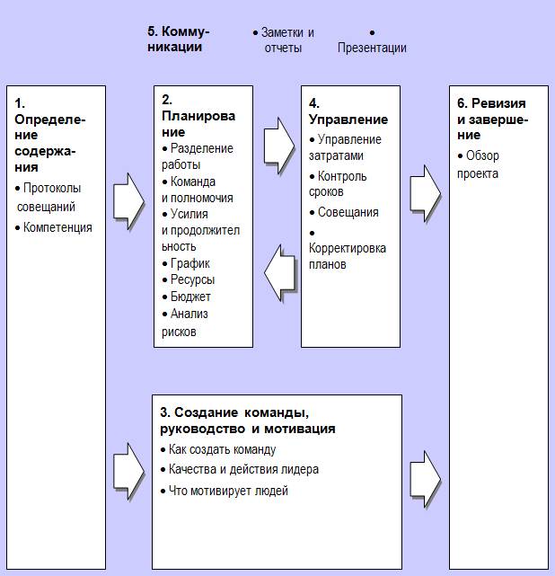 2. Классическая шестиэтапная модель управления проектом, помогающая выявить основные стадии и интегрировать их в единое целое в процессе управления проектом.