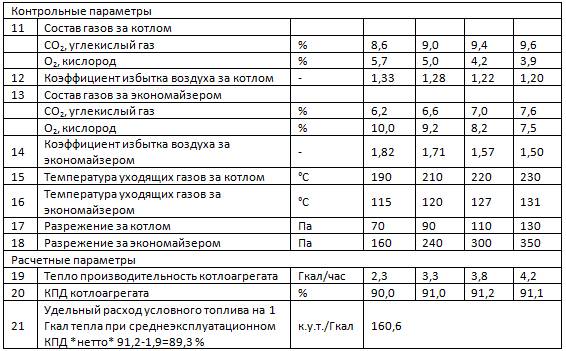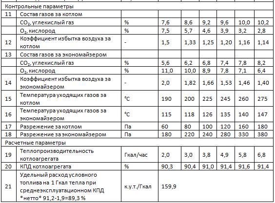 Таблица 1.2. Работа котлоагрегата ДКВр-6,5/13 ст. №1 (рег. № 11995), установленного в котельной на природном газе с теплотой сгорания 8100±50 ккал/м3