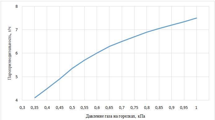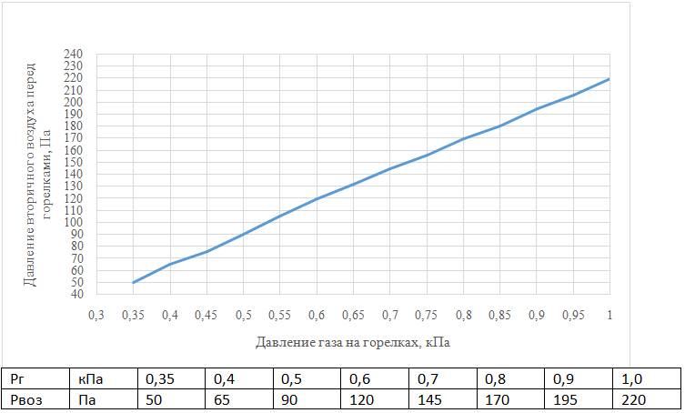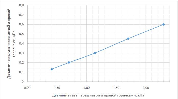 Рис.1.5 Соотношение газ-воздух горелок ГМГ-5М котла ДКВр-10/13