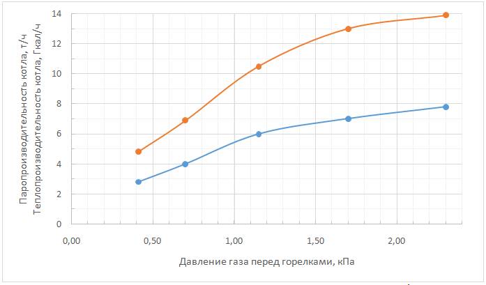 Рис.1.4 Паропроизводительность и теплопроизодительность котла ДКВр-10/13
