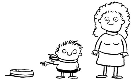 Сказав это, Тимми Фейл уезжает на своей Румбе под стол и врезается в стулья.