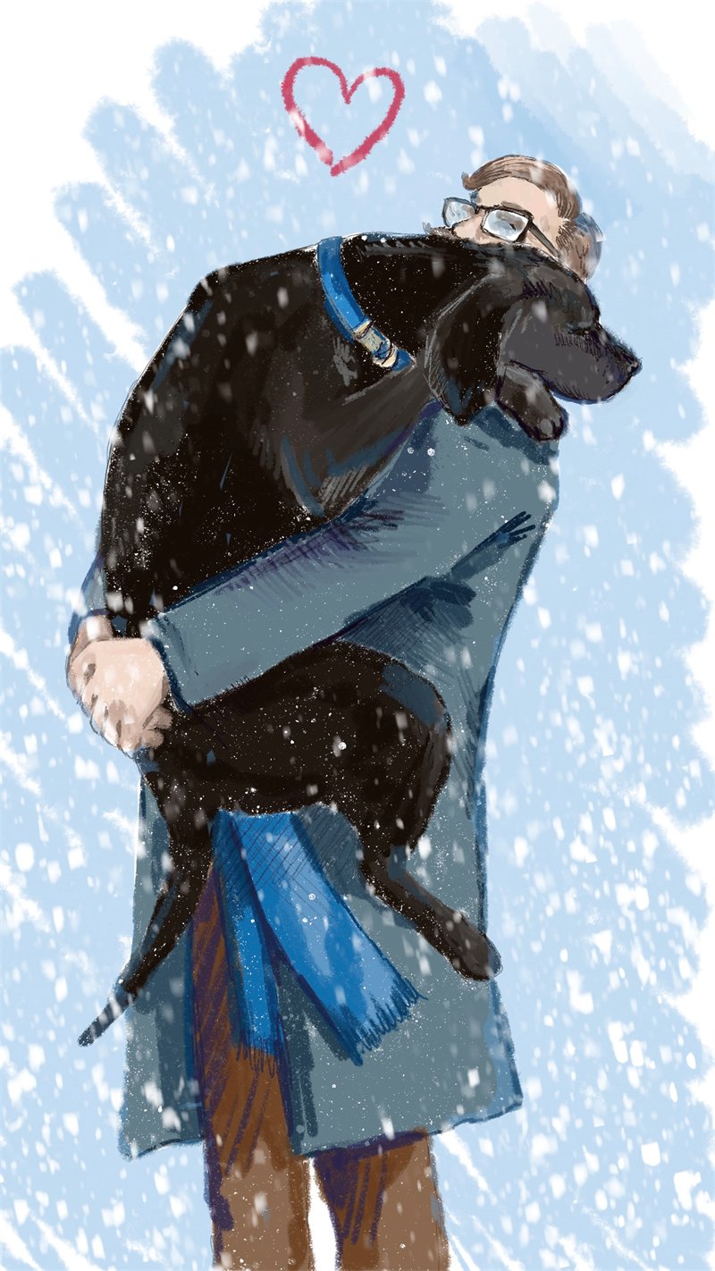 Стёпка следом за подругой с собакой вышел во двор. Открыв дверь подъезда, он на мгновение замер. Белоснежное великолепие ослепило. Снег был повсюду: на деревьях, на лестнице, на прохожих. Он очень быстро повис на ресницах, укусил за щёки, и улыбка с ямочкой на мальчике появилась сама по себе.