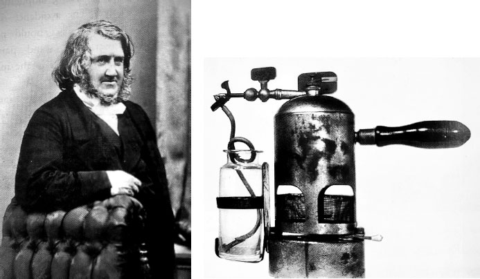 Рисунок 1.1: А. Джеймс Янг Симпсон. Б. Ингалятор с хлороформом.