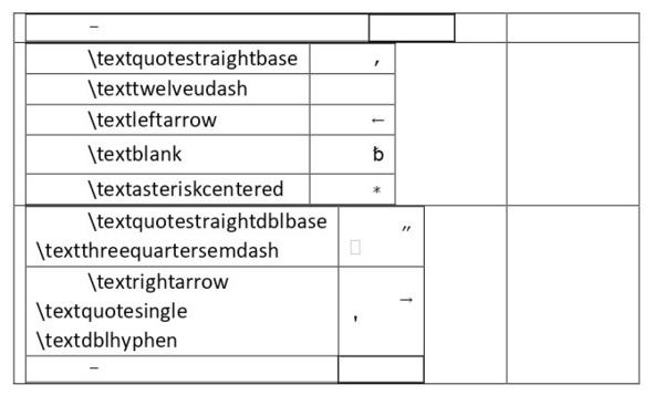 Xar qanday simvolni kodi ma’lum bo‘lsa uni chop etish mumkin. Buning uchun \symbol buyrug’i yaratilgan. Uni faqat bitta majburiy argumenti bo‘lib, unda simvol kodi ko‘rsatiladi. Lotin alfaviti va raqamlar kodi ASCII-kodiga mos keladi. Misol: