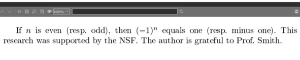 Eslatib o‘tamiz, matn shrifti o‘lchamini o‘zgartirish buyruqlari formulalardagi harflar o‘lchamini ham o‘zgartiradi. Umumiy xatoga yo‘l qo‘ymasangiz, qatorlar orasidagi vertikal masofa ham o‘zgaradi. Agar tahrirlangan shrift hajmi butun xat yozgan bo‘lsa (masalan, \small yoki {\footnotesize), keyin Tex bo‘sh chiziq ko‘radi, bu shriftga normal o‘tish kerak emas, aks holda yo‘l oralig‘i noto‘g‘ri bo‘ladi. Misol: