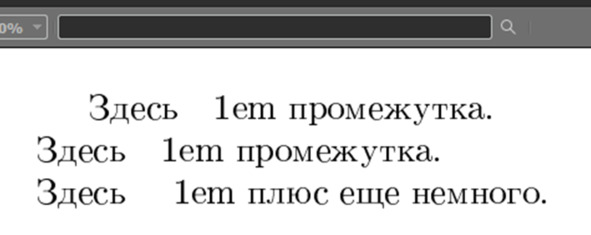Agar aniq oraliq qiymati bo‘yicha oraliq qoldirilishi kerak bo‘lsa, \hspace {dlina} buyrug’idan foydalaniladi.